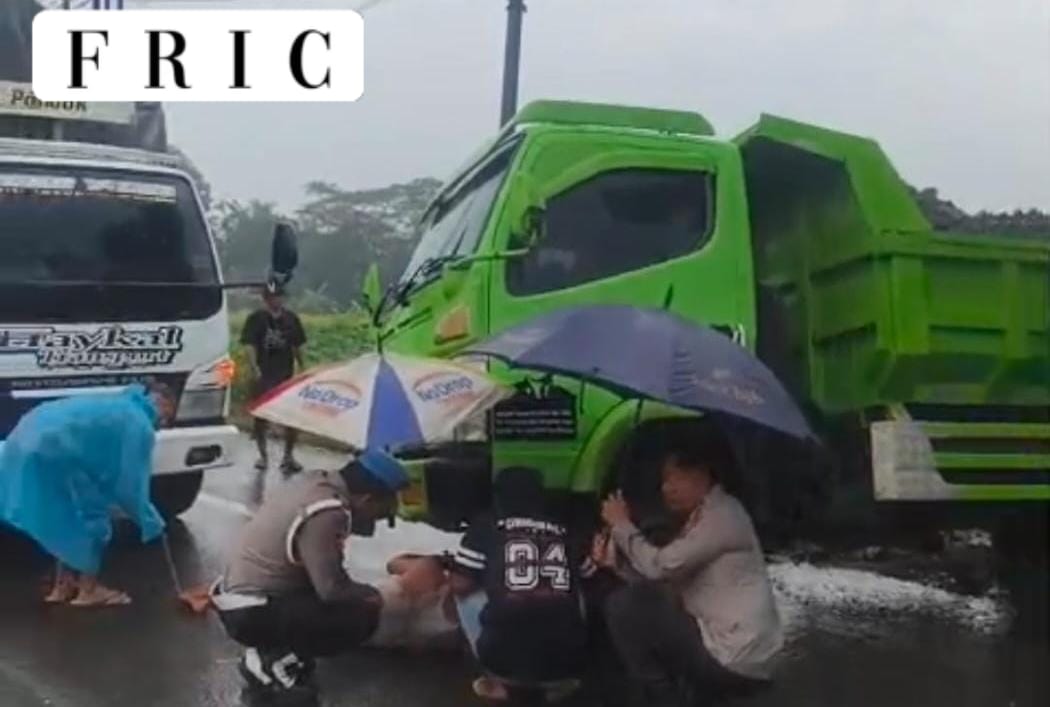 DimensiTv.Com – Kuningan, Jawa Barat — Peristiwa kecelakaan lalu lintas terjadi di ruas jalan wilayah Sindangbarang, Kabupaten Kuningan, Jawa Barat, saat kondisi cuaca hujan yang menyebabkan jalan licin dan membahayakan pengguna jalan. Insiden tersebut melibatkan sebuah kendaraan truk yang mengalami selip ban hingga terhambat di badan jalan dan mengganggu arus lalu lintas.