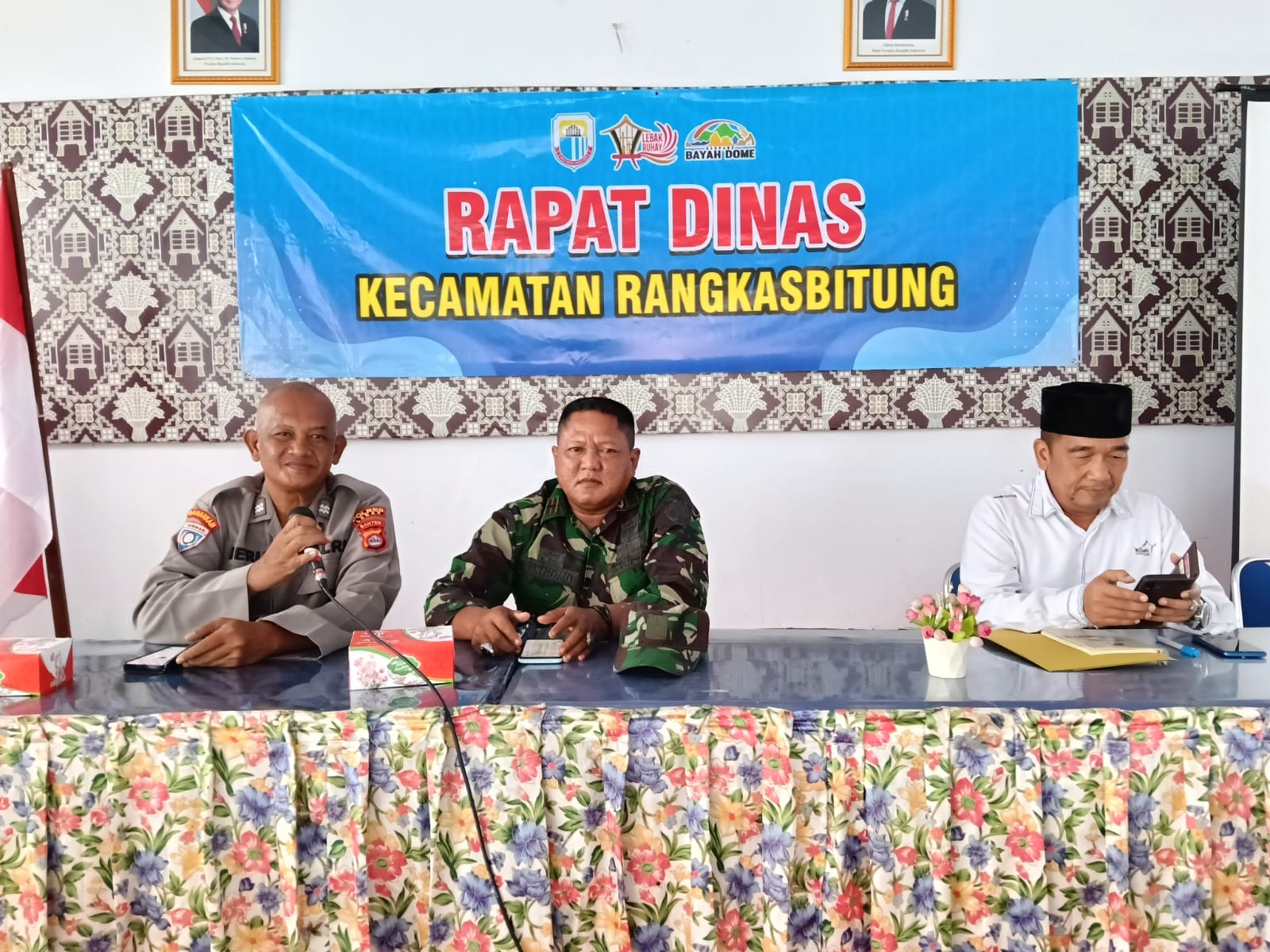 “Ya, hari ini kami dari Polsek Rangkasbitung Polres Lebak menghadiri rapat Dinas tingkat Kecamatan Rangkasbitung selain menghadiri rapat, kami dari Polsek Rangkasbitung memberikan himbauan dan edukasi Kamtibmas kepada Para tamu undangan rapat.