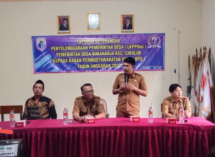 Kepala Desa Sukaharja Ujang dalam sambutannya menyampaikan bahwa penyampaian LPPD dan LKPPD merupakan bentuk pertanggungjawaban dan transparansi pemerintah desa kepada masyarakat dan BPD atas pelaksanaan pemerintahan desa selama satu tahun anggaran. Laporan tersebut memuat capaian kinerja pemerintahan desa, pelaksanaan pembangunan, pembinaan kemasyarakatan, serta pemberdayaan masyarakat desa.