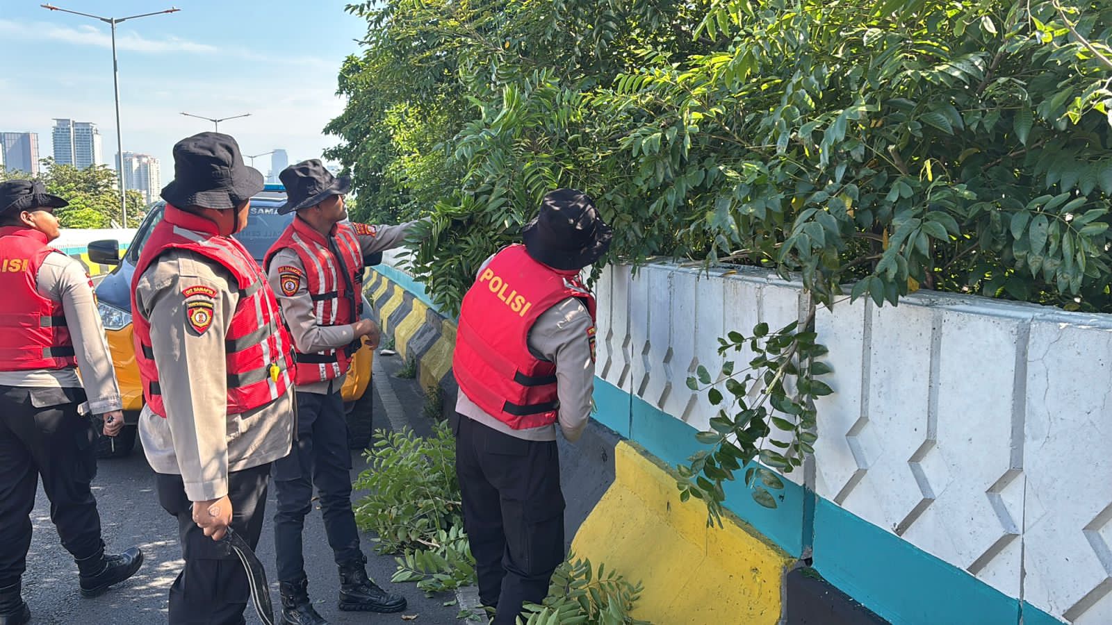 “Personel kami melakukan pengecekan serta pemotongan ranting pohon yang menjulang ke badan jalan di Fly Over Antasari. Hal ini dilakukan untuk mencegah potensi bahaya yang dapat mengganggu keselamatan pengguna jalan,” ujar Kombes Pol. Wahyu.