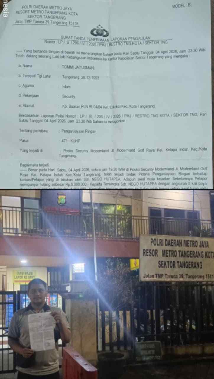 Berdasarkan keterangan dalam laporan, insiden terjadi pada Sabtu, 4 April 2026 sekitar pukul 19.30 WIB di Posko Security kawasan Modernland Golf Raya, Kelurahan Kelapa Indah, Kecamatan Tangerang.